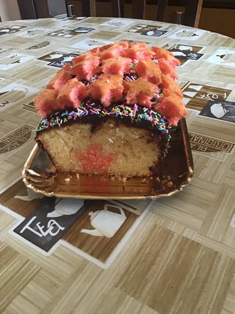 Per non farlo uguale ho dato il mio tocco personale sulla superficie del plum-cake e l’ho decorato con delle stelline che mi sono avanzate e delle codette di zucchero.